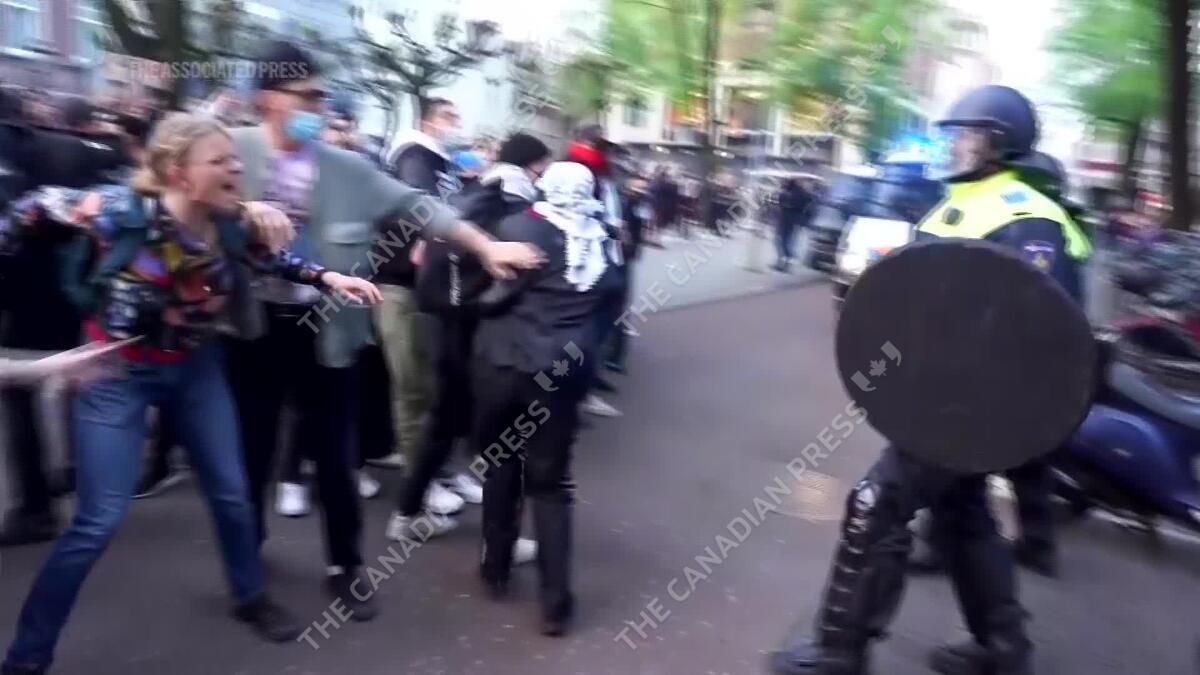 Pro-Palestinian student demonstrators clash with police in Amsterdam