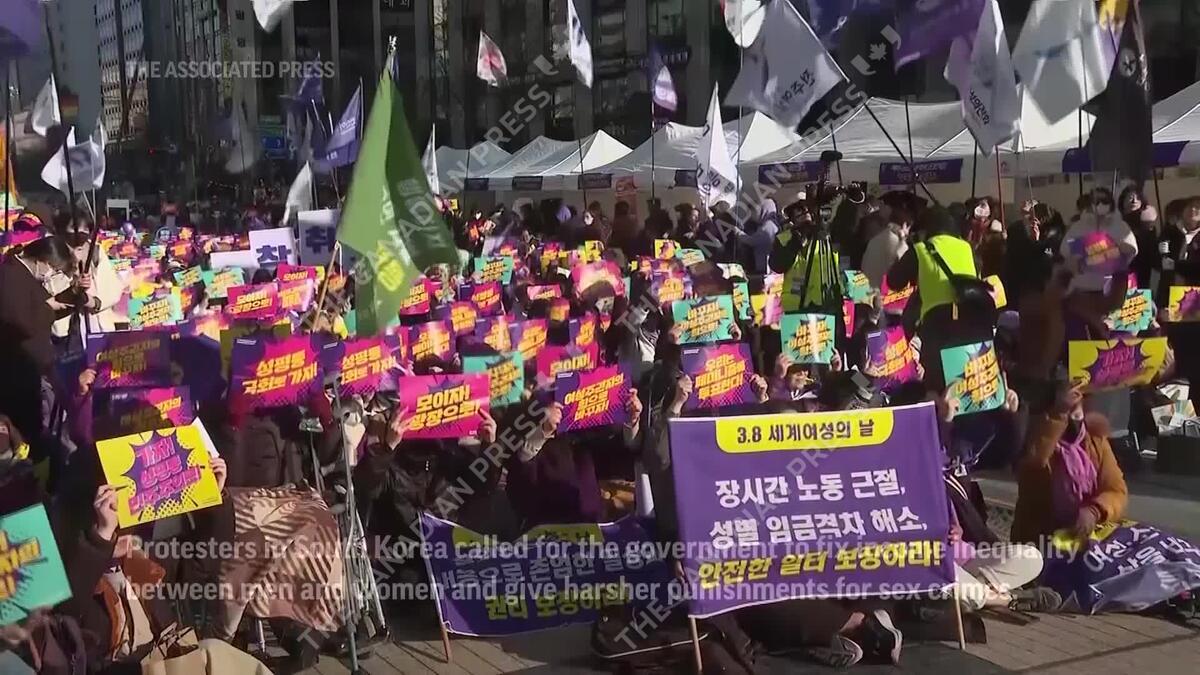 Women worldwide participated in International Women’s Day, taking part in strikes, marches and demonstrations that underscored efforts to combat discrimination and accelerate the drive for gender parity. (March 8) (AP Video: Joeal Calupitan, Florent Bajrami, Renata Brito, Muhammad Farooq, Yong Jun Chang/Production: Marissa Duhaney)