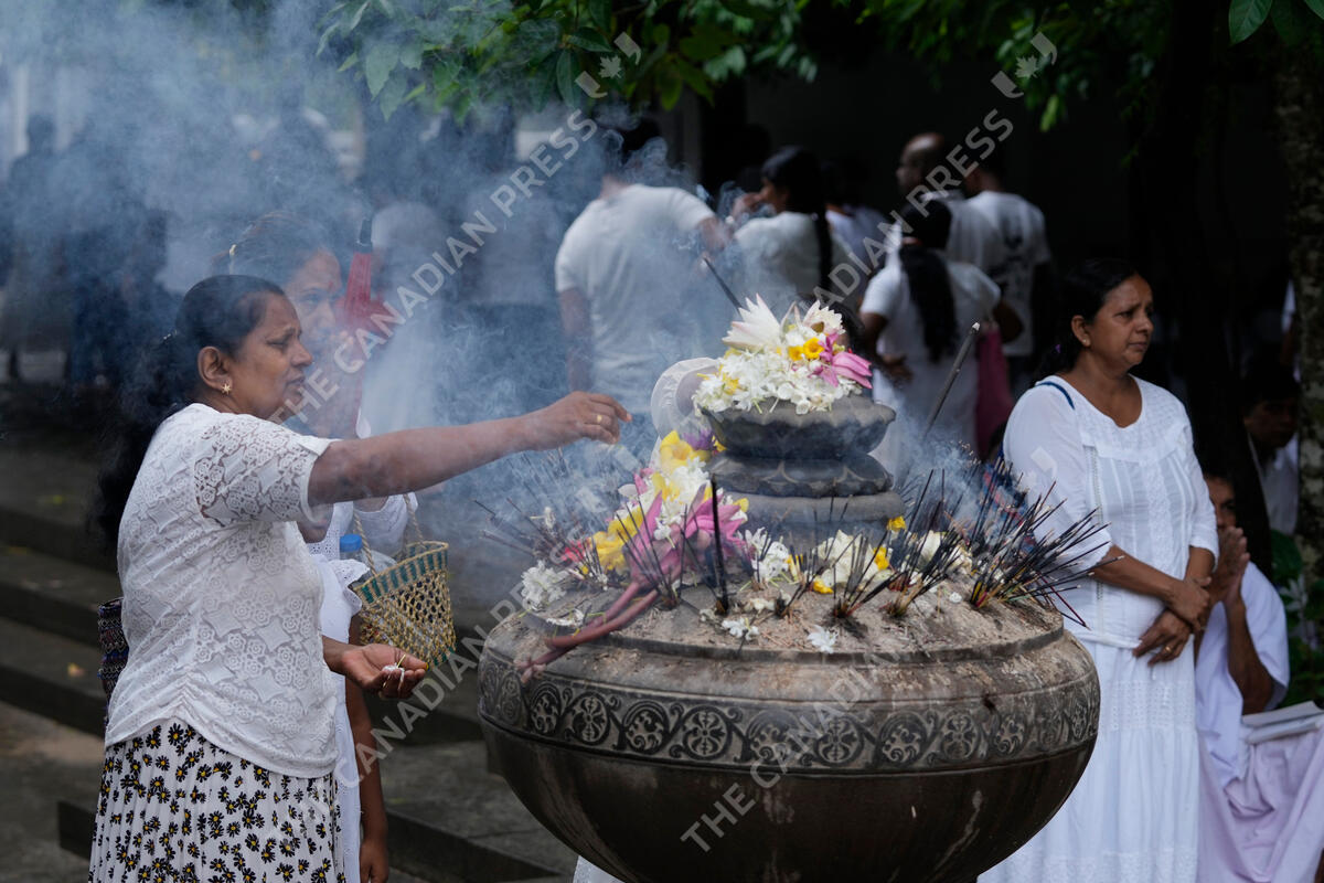 A Sri Lankan Buddhist devotee prays at a temple on the day of Buddha Poornima, or Vesak in Colombo, Sri Lanka, Thursday, May 23, 2023. In many parts of Asia, the sacred day marks not just the birth, but also the enlightenment and passing of the Buddha. (AP Photo/Eranga Jayawardena)