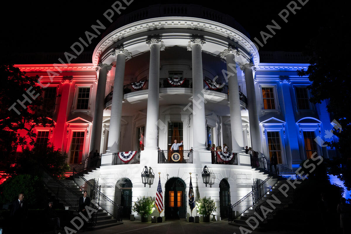 President Joe Biden waves to a crowd after a fireworks show during a Fourth of July celebration at the White House, Monday, July 4, 2022, in Washington. (AP Photo/Evan Vucci)
