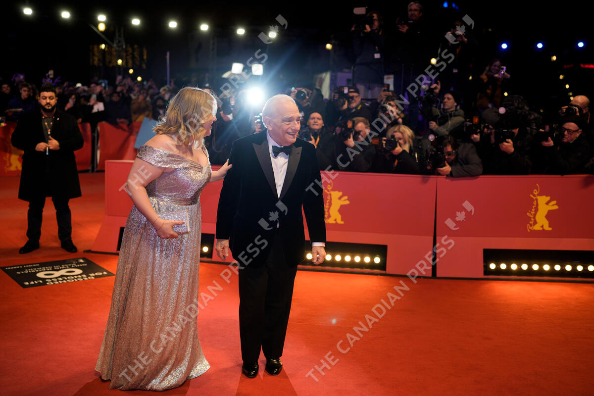 U.S. Director Martin Scorsese, right, arrives with his daughter Francesca on the red carpet for his Honorary Golden Bear ceremony, at the International Film Festival 'Berlinale', in Berlin, Tuesday, Feb. 20, 2024. (AP Photo/Markus Schreiber)