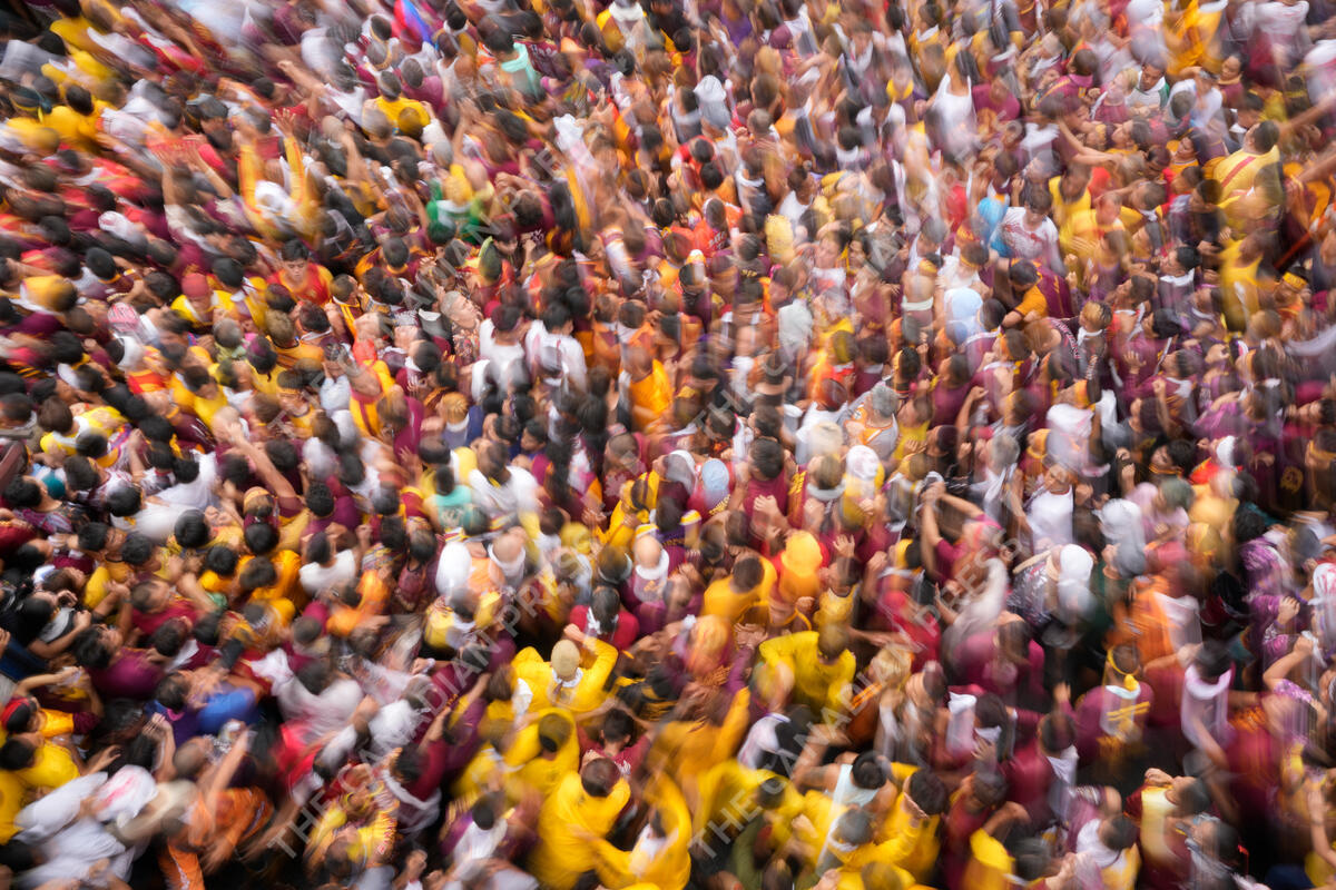 Devotees join the annual Black Nazarene procession which was resumed after a three-year suspension due to the coronavirus pandemic on Tuesday, Jan. 9, 2024 in Manila, Philippines. A mammoth crowd of mostly barefoot Catholic devotees joined a chaotic procession through downtown Manila Tuesday to venerate a centuries-old black statue of Jesus Christ with many praying for peace in the Middle East where Filipino relatives work. (AP Photo/Aaron Favila)