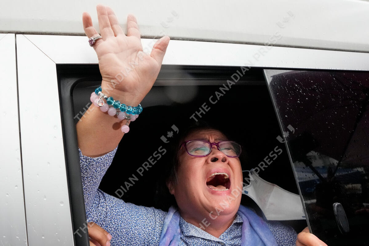 Jailed former Senator Leila de Lima reacts after she goes out of the Muntinlupa City trial court on Monday, Nov. 13, 2023 in Muntinlupa, Philippines. A Philippine court on Monday ordered the release on bail of the former senator jailed more than six years ago on drug charges she said were fabricated to muzzle her investigation of then-President Rodrigo Duterte's brutal crackdown on illegal drugs. Two other non-bailable drug cases against de Lima have been dismissed. (AP Photo/Aaron Favila)