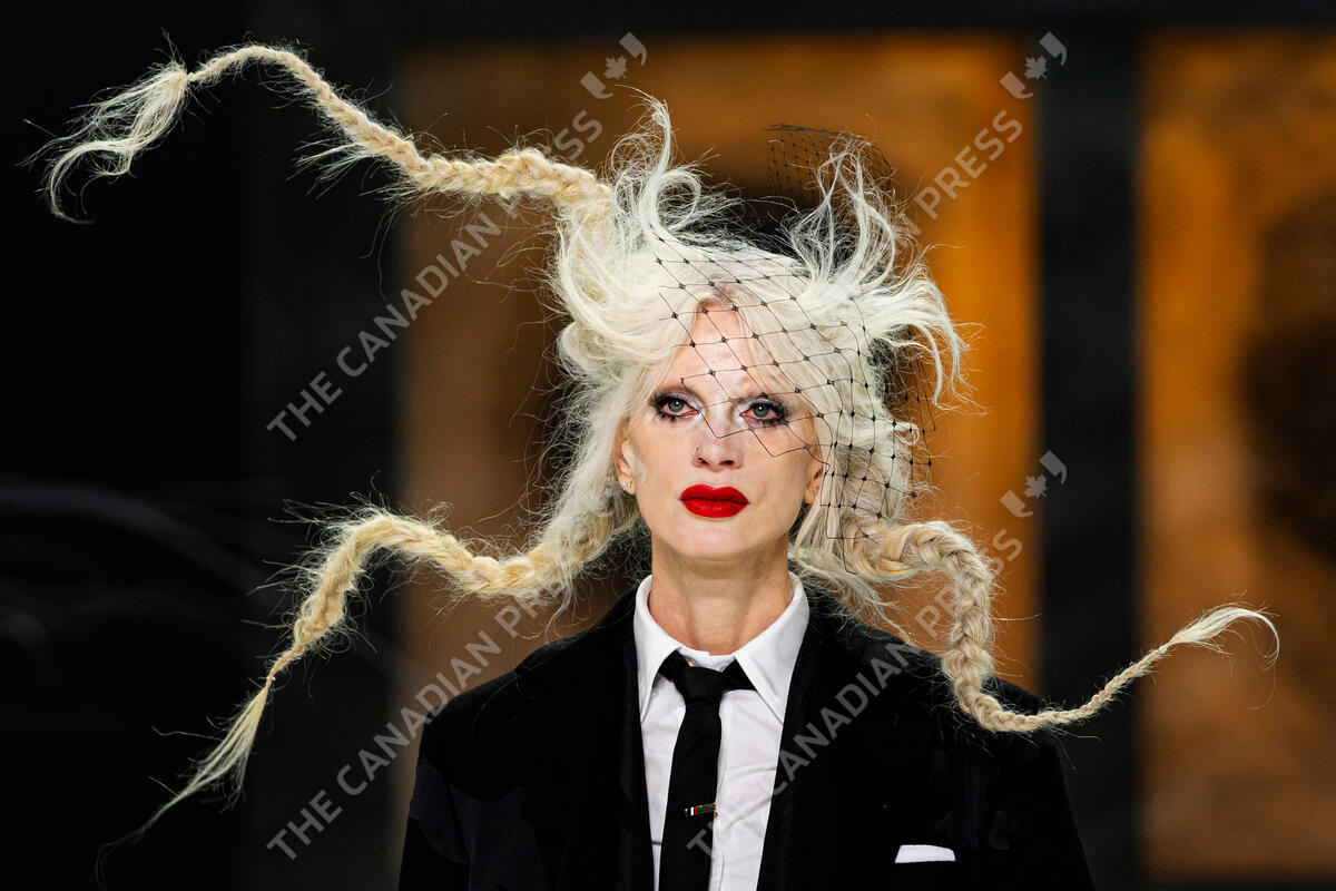 A model walks the runway during the Thom Browne fall/winter 2024 fashion show during New York Fashion Week, Wednesday, Feb. 14, 2024, in New York. (AP Photo/Peter K. Afriyie)