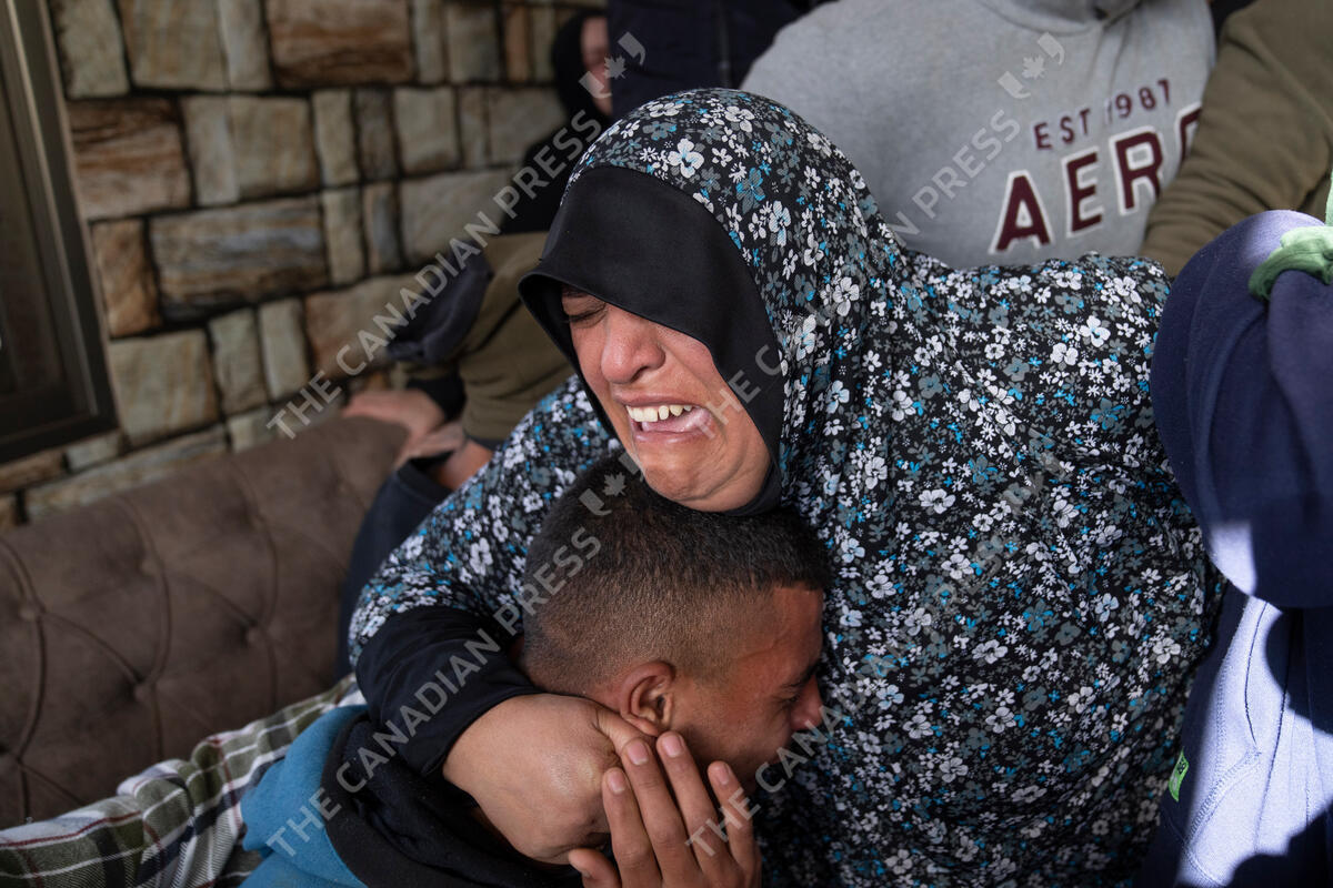 Mourners cry after taking the last look at the body of Palestinian Abdel Rahman Hamed, 18 during his funeral in the West Bank town of Silwad Monday, Jan. 29, 2024. Palestinian authorities say five Palestinians have been killed by Israeli forces in separate shootings across the occupied West Bank on Monday including Hamed who was killed during clashes with Israeli border police at his home village of Silwad. (AP Photo/Nasser Nasser)