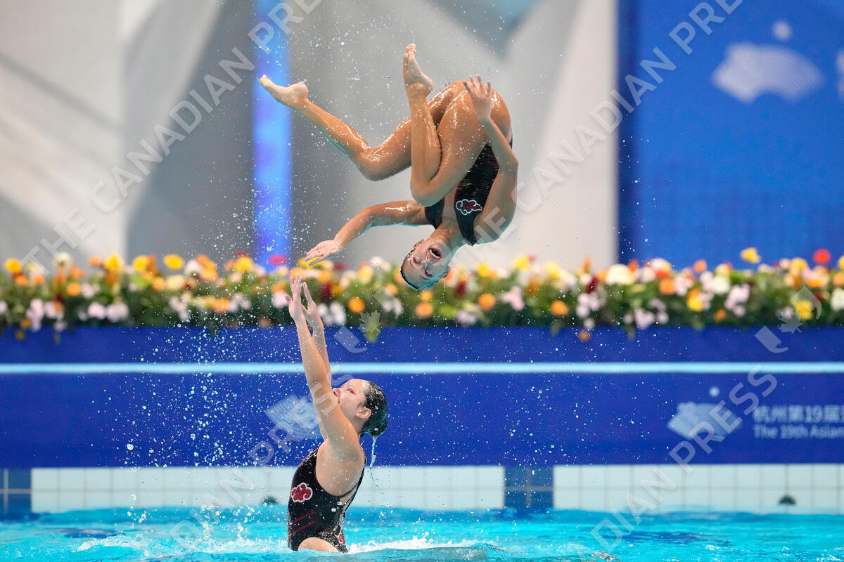 Team Thailand perfoms during the team free routine artistic swimming competition at the 19th Asian Games in Hangzhou, China, Sunday, Oct. 8, 2023. (AP Photo/Aaron Favila)