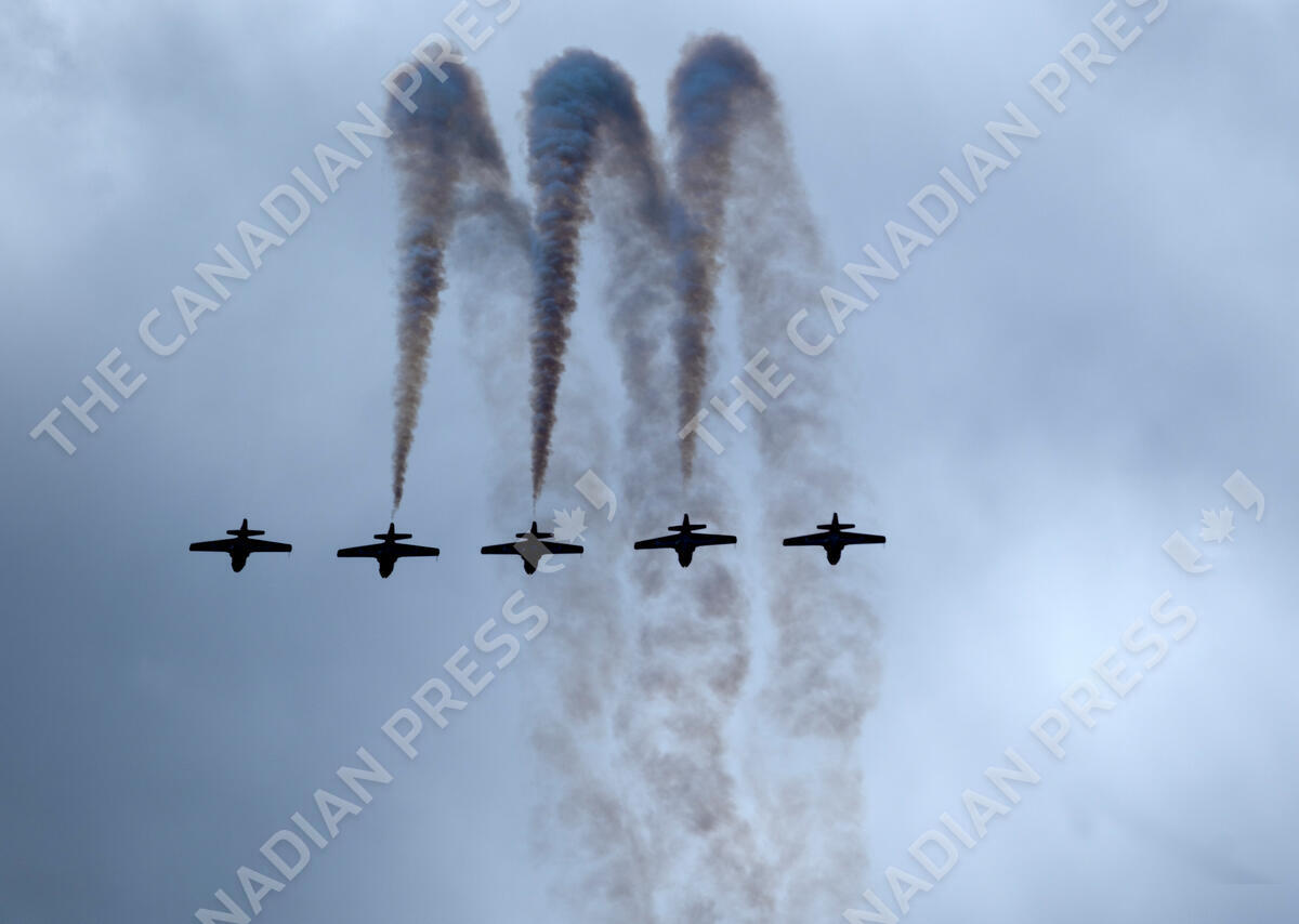 An aerial acrobatics team the Canadian Snowbirds performs during the Pacific Airshow at Huntington Beach, Calif., on Sunday, Oct. 1, 2023. (AP Photo/Richard Vogel)