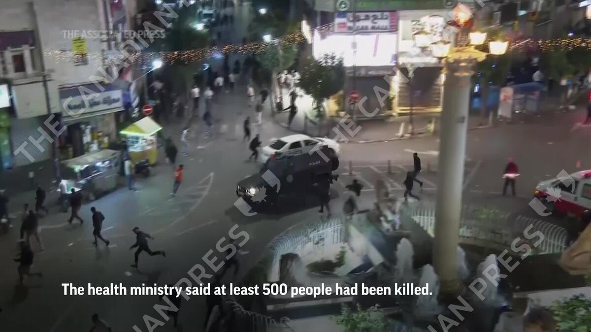 Protests in Ramallah after an explosion at a hospital in Gaza killed hundreds of people