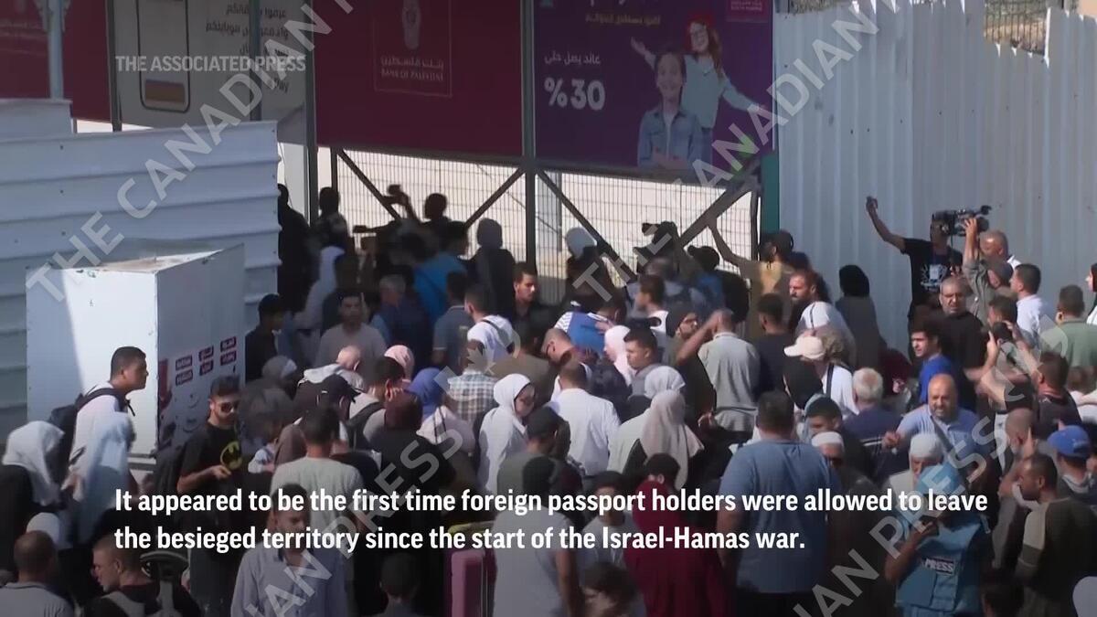 Foreign passport holders seen entering Rafah crossing from Gaza to Egypt, first since war began