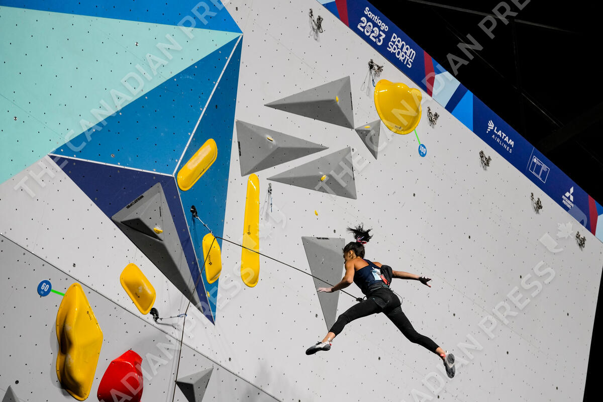 Natalia Grossman of the United States competes in the women's boulder lead climbing final at the Pan American Games in Santiago, Chile, Tuesday, Oct. 24, 2023. Six new venues were built for 30 sporting events, an investment of $507 million. (AP Photo/Esteban Felix)