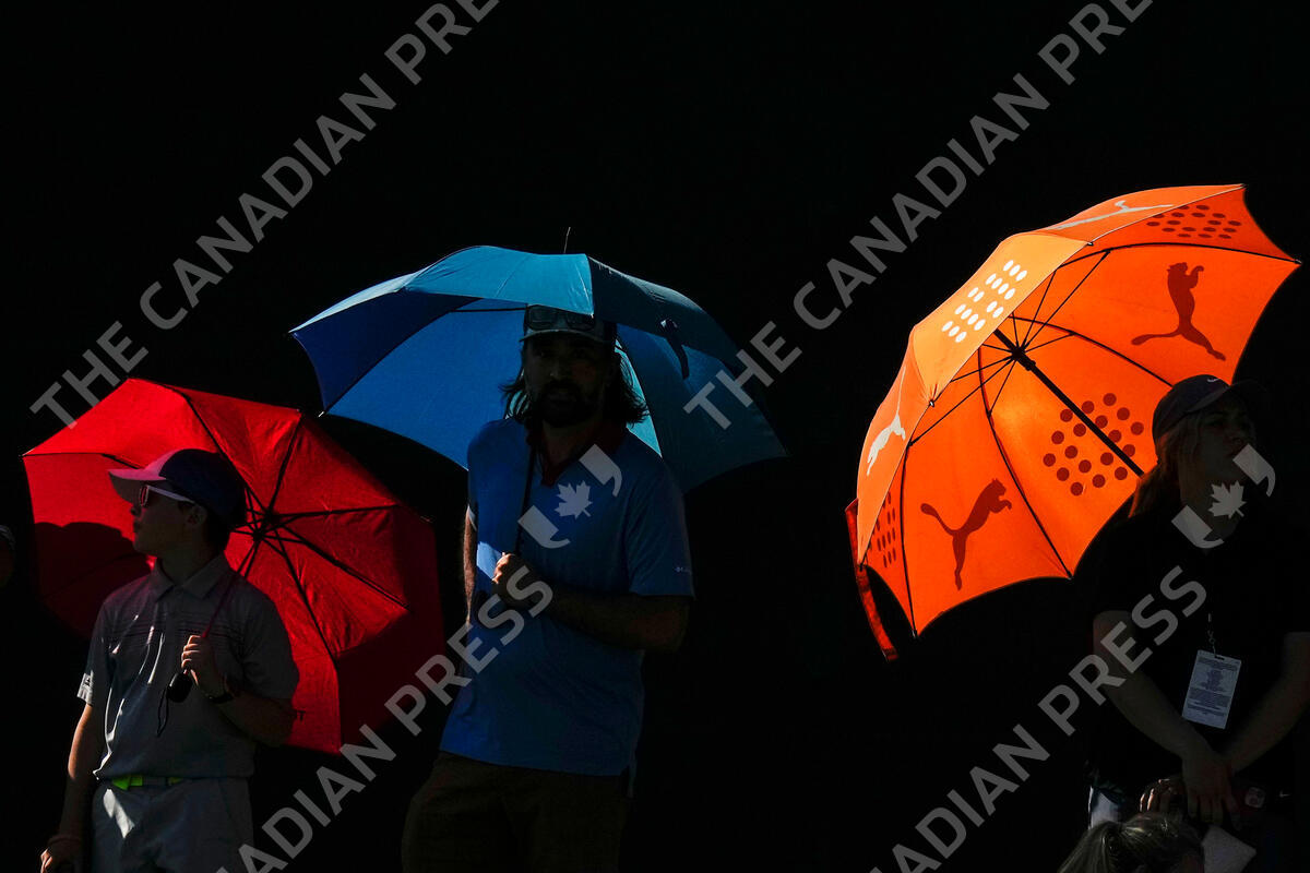 Fans shield themselves from the sun during the final round of the Travelers Championship golf tournament at TPC River Highlands, Sunday, June 25, 2023, in Cromwell, Conn. (AP Photo/Frank Franklin II)