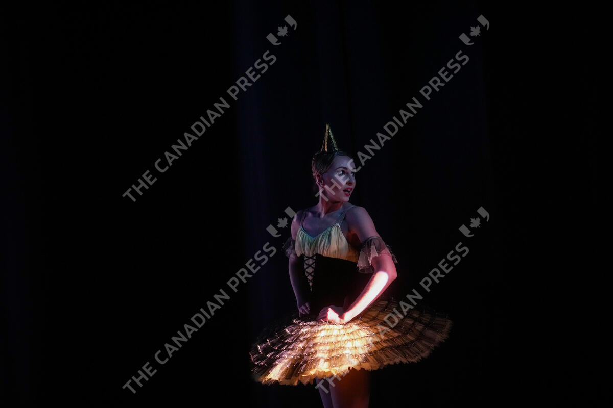 A member of the National Ballet of Ukraine waits to take the stage to dance during a performance of "Nadiya Ukraine" (Hope for Ukraine) on their opening night in Vancouver, on Monday, February 5, 2024. Twenty-three dancers are on a Canadian tour highlighting Ukrainian culture through traditional dance while also supporting the war effort by collecting donations from the audience for Ukraine First Lady Olena Zelenska's Foundation and Humanite. THE CANADIAN PRESS/Darryl Dyck